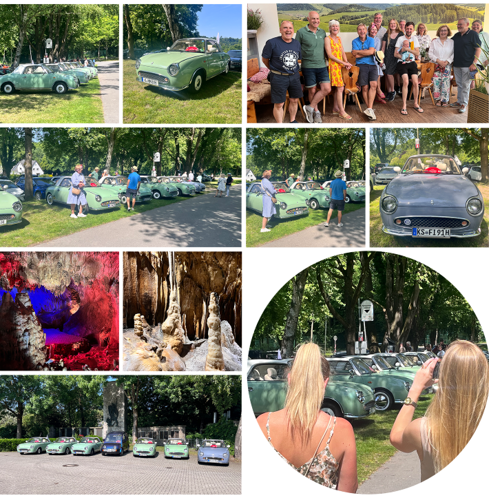 We had a lovely meeting with some great trips and good food. If you’re wondering what that strange car was that was with us, it’s a Nissan S-Cargo belonging to one of the club’s forum members. His Figaro broke down at short notice, so he came in the S-Cargo – but then that also broke down at some point… (radiator).