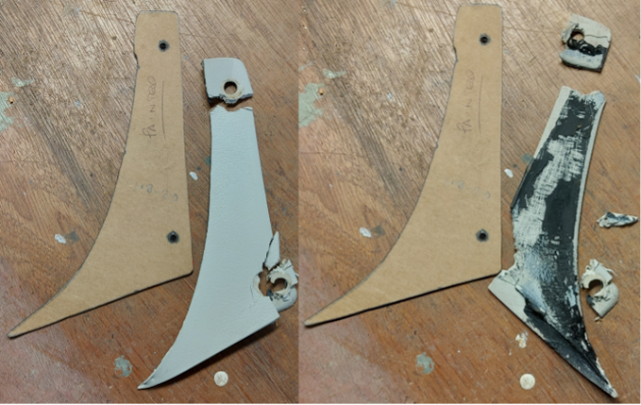 Having noticed that the right-hand side dashboard plastic mounting bracket had started to crumble around the mounting holes, I decided to have a go at repairing it with something more permanent. Note, that I am not a fabricator, or a paint sprayer so please do not judge me!!