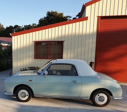 We bought our Figaro from a family in Nelson NZ, who had owned it for 8 yrs, but due to family size were not using it very much. I flew down from Wellington and picked it up: it had its issues around hard starting, shrunk and cracked soft top and the usual dirty interior so at first glance nothing too bad.