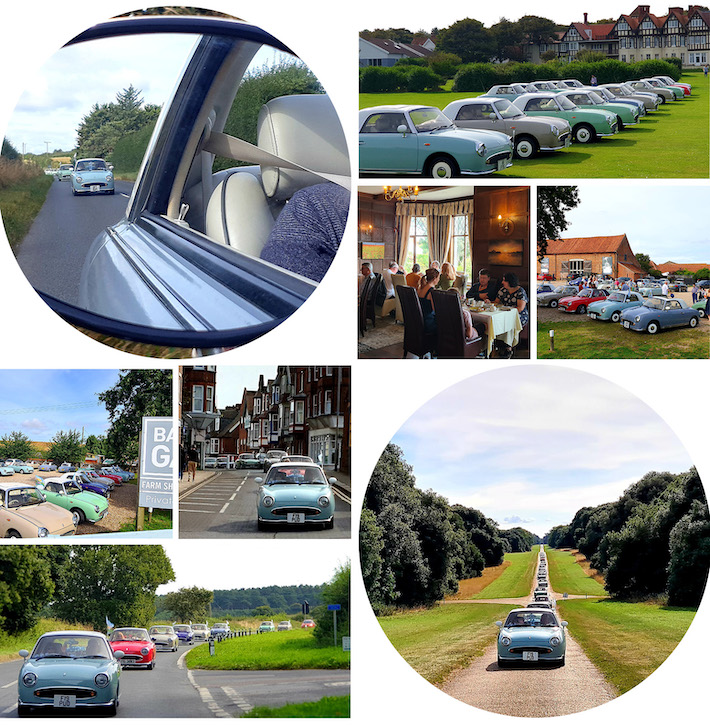 Next was a journey across the country again through Glandford, Wiveton, Morston and Stiffkey, and then onto Wells-next-the-Sea where our convoy greeted locals and tourists with our beep-beeps, creating quite a spectacle as Figaro after Figaro passed through… and then finally onto our final destination Holkham Hall, an 18th Century Palladian style house set in a thriving 25,000 acre estate!