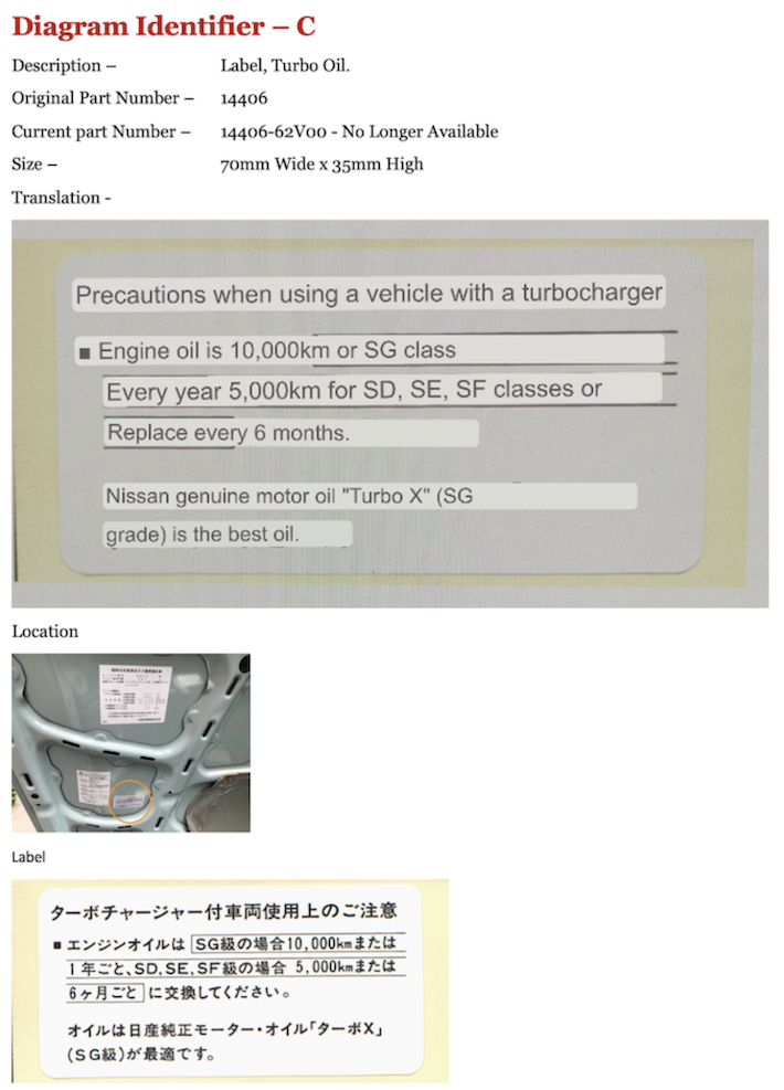 If you look under your bonnet you may see three white stickers. These are important information stickers about the maintenance of the engine, emission figures and recommended fluids that have faded over time. The three stickers are one of 21 labels, stickers and tags supplied when the car was manufactured. Learn more