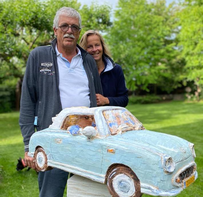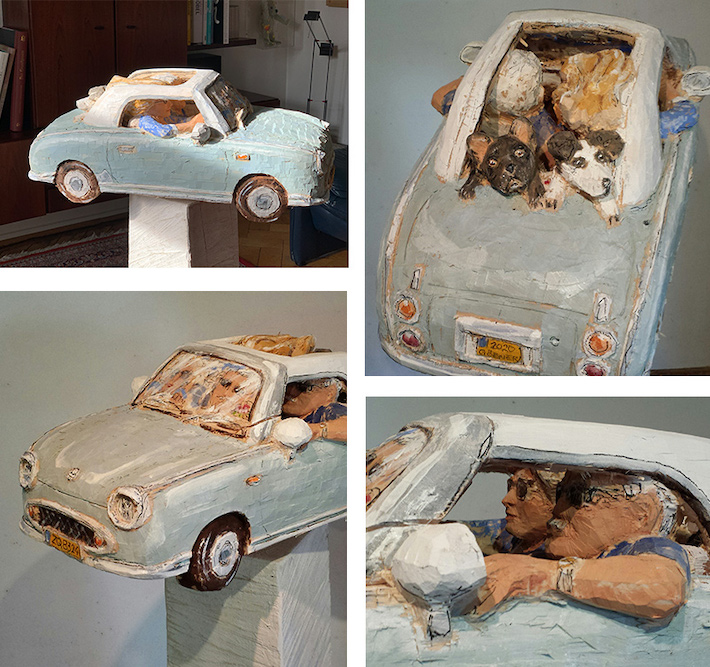 Created by German artist Raimund Göbner Bildhauer this large Figaro model has been carved out of Limewood. We love the detail of the car, driver, passenger and the two dogs in the back.